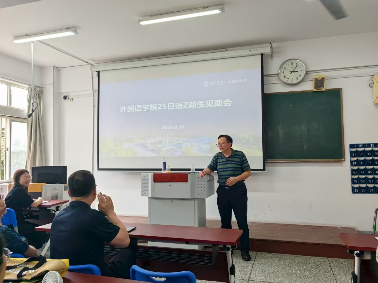 2025年8月31日下午三点,外国语学院在1号楼104教室隆重举行了2025级日语转本新生见面会。院长王纯磊、党委副书记(张见)主持工作、日语系主任刘红艳、副主任李华勇、班主任谢琦以及全体日语系教师参加活动。教师代表与全体新生齐聚一堂,共同开启大学新篇章。活动由辅导员李启程主持,氛围温馨而庄重,充满了对未来的期待。