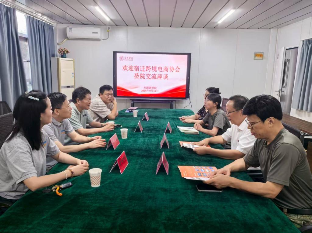 9月16日上午,宿迁跨境电商协会会长杨向东、全球贸易通政府事务高级顾问莫广顺与章程程、上海美新物流有限公司总经理耿立新一行到访我院,双方就深化校企合作、推动产教融合展开深入交流。外国语学院院长王纯磊、副院长王善江、詹慧芳参加活动。