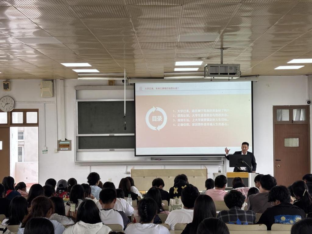 讲座伊始,程新宇以“大学已来,未来之路我们该怎么走?”为主题,强调新时代有志青年需坚守正确信仰与积极人生观。随后,他围绕“大学已来”“提高认知”“规划长远”“正确信仰”四大核心板块,将个人发展融入时代背景,提出“发挥个人优势,坚定实干信念,既立足当下、向下扎根,又仰望天空、向上生长”的理念,以深入浅出的讲解,让同学们深刻理解坚定信仰、科学规划的重要意义。