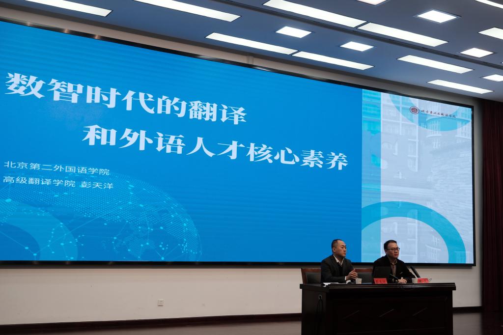 本次研讨会分学术报告和座谈研讨两个阶段。第一阶段,彭天洋教授作题为“数智时代的翻译和外语人才核心素养”的专题讲座。他深入剖析了人工智能技术对翻译行业的深远影响,指出尽管技术迭代迅猛,高素质外语人才仍是支撑国际传播与跨文化交流的中坚力量。彭教授系统阐释了行业转型中的“变”与“不变”,强调数智时代外语人才应具备四大核心素养:扎实的双语能力、丰富的跨领域实践经验、熟练的智能技术应用能力以及敏锐的跨文化交际意识。他提出,“人机协作”的本质在于拓展人才能力边界、优化工作模式,而非简单替代,呼吁外语人才主动拥抱技术变革,持续提升综合素养,更好服务国家对外开放与社会发展。