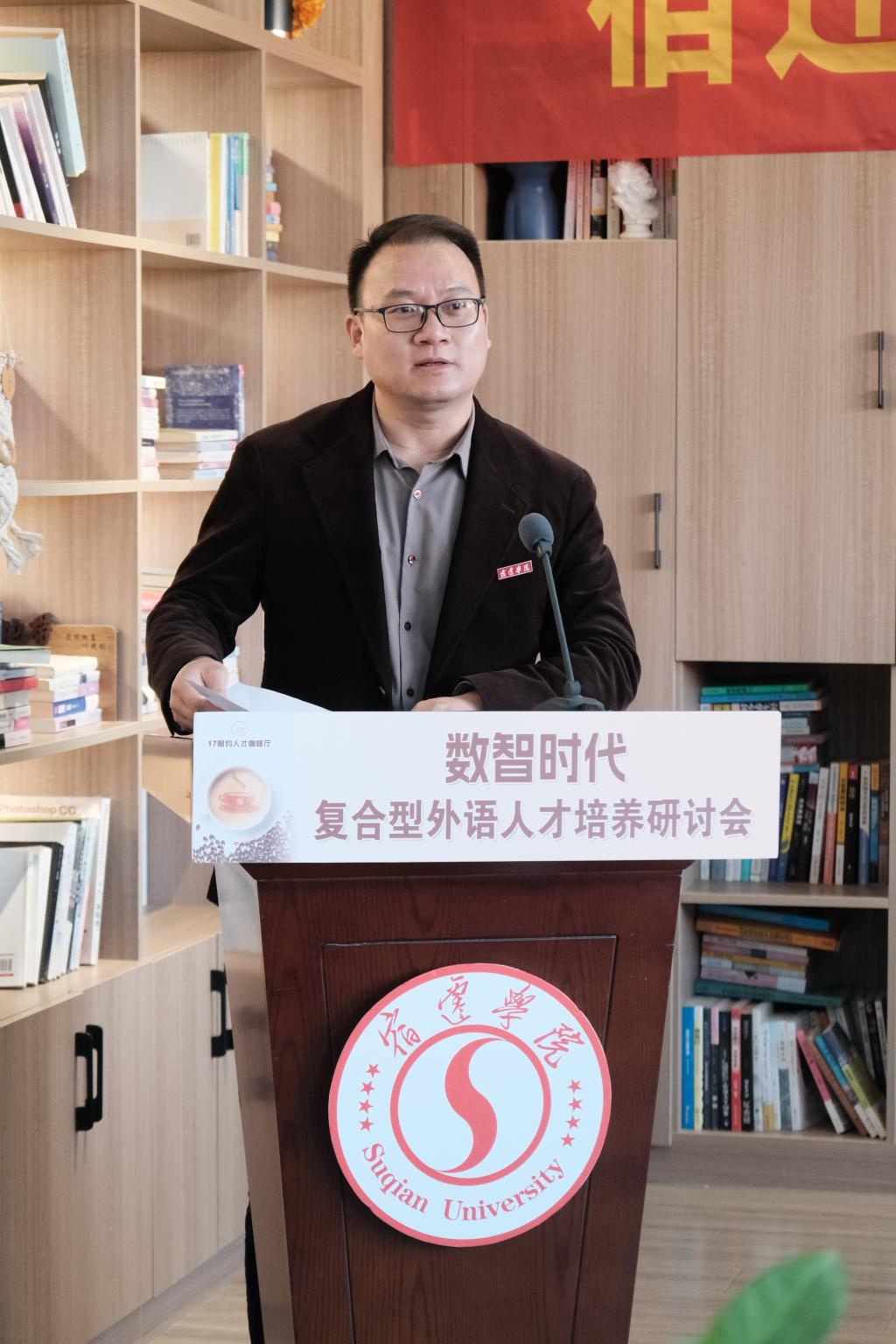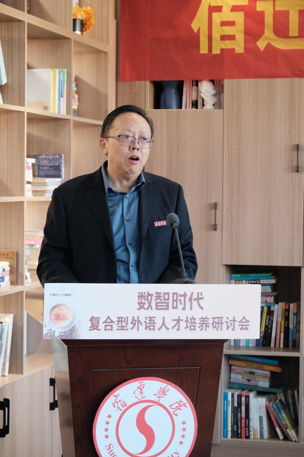 第二阶段,外国语学院院长王纯磊致辞,他介绍了外院在复合型外语人才培养方面的探索实践与面临的挑战,并对与会专家围绕数智时代外语人才培养所分享的前沿观点和深刻见解表示衷心感谢。