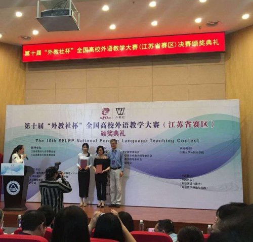 2019年5月19日,第十届“外教社杯”全国高校外语教学大赛(江苏赛区)总决赛在江南大学举行。我校外国语学院蔡金秋团队以现场授课第一名的成绩进入决赛,经过决赛的即兴说课和答辩环节的比拼,最终获得本科英语专业组一等奖第一名的殊荣。