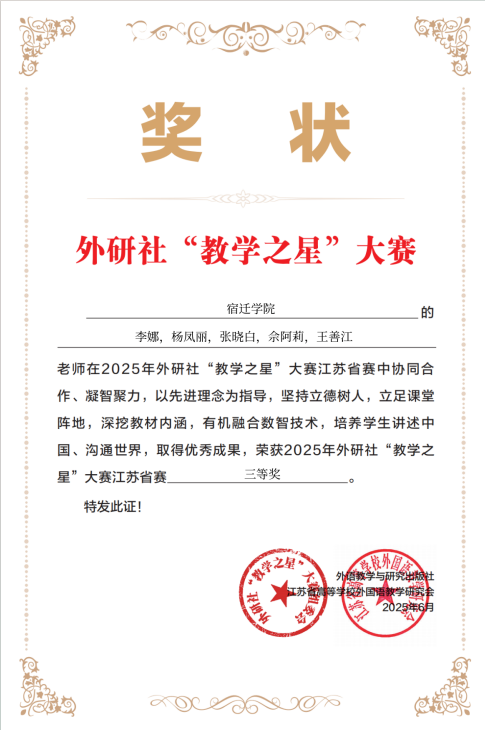 地址:江苏省宿迁市黄河南路399号 联系电话:0527-84201860 传真:0527-84201860 邮编:223800 江苏省宿迁学院外国语学院 Email:wyx@squ.edu.cn