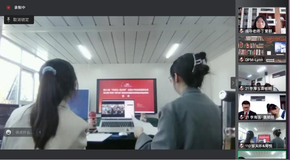 2022年4月9日,邹天乐和周悦两名同学在外院丁爱群的带领下,在线上参加了第二十四届“外研社·国才杯”全国大学生英语辩论赛华东地区复赛。严峻的疫情防控状态也没有影响两位同学展示自我、激扬青春的热情与活力。