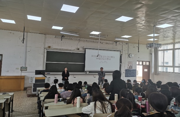 4月28日14:30,外国语学院在一阶举办英语师范生基本功比赛及考编经验分享会。我院英语系主任刘彬老师、2017级优秀学生代表杨露清同学及在校全体非毕业班英语师范专业的同学参加了本次分享会。