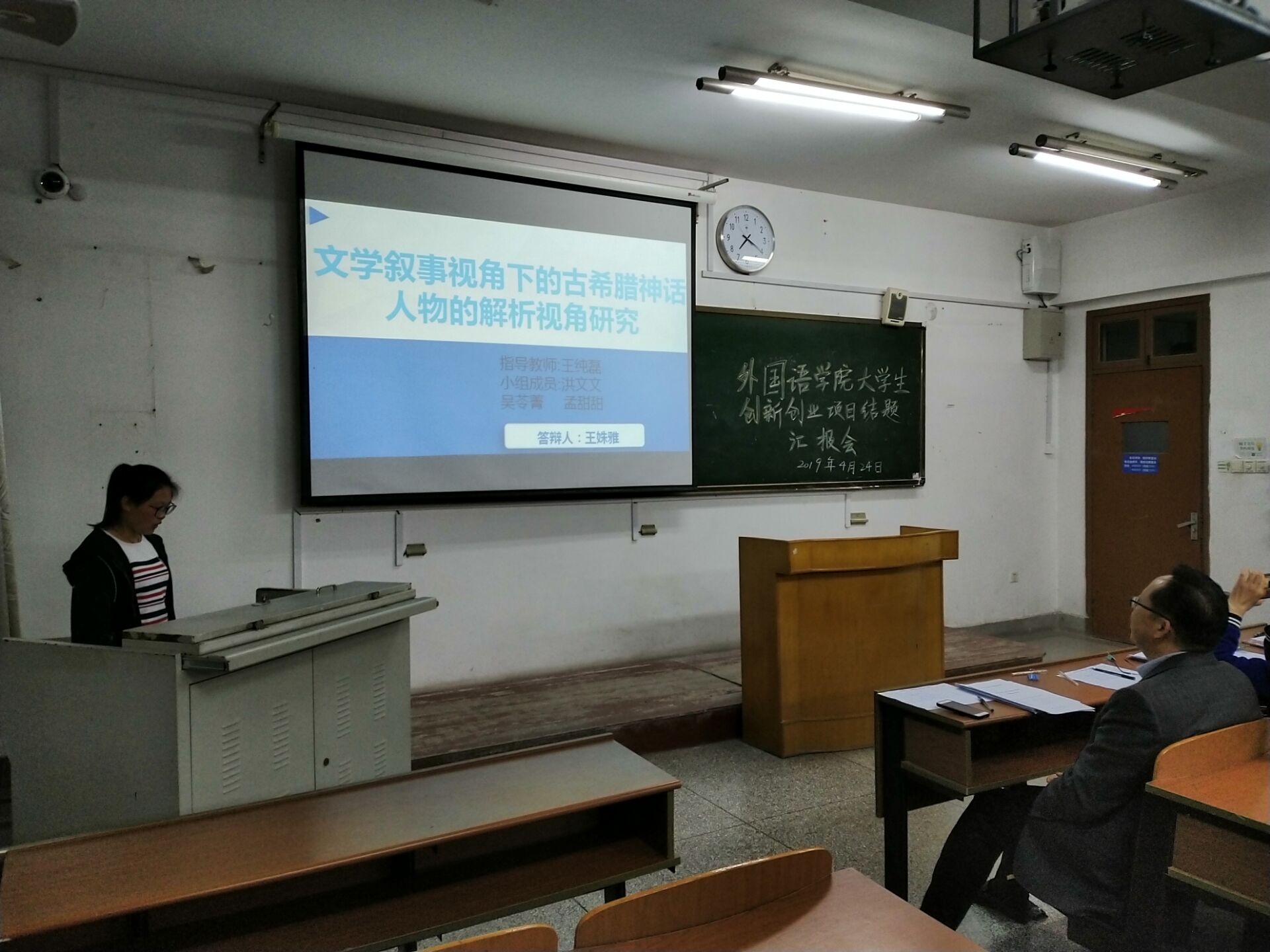 外国语学院共有2个省级项目,5个校级项目。各个项目组在答辩前都经过了项目申报、期中检查,最后迎来了这次精心准备的结题报告。宣布答辩会开始后,汇报人便依次上台结合PPT进行展示,图文并茂,主要介绍项目概况、研究成果、完成情况等,时间在3分钟左右。院长和各位指导老师组成的评审组,在学生完成汇报后,以严谨的态度进行点评,提出问题,随后学生予以答辩。评审中分析了项目进展过程中存在的问题,考察了学生对项目的熟悉程度。同时,评审组核实了项目论文发刊日期,确保达到预期成果,圆满结题。