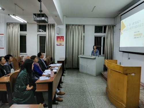 2019年4月24日晚18:30,外国语学院大学生创新创业项目结题汇报会在1102教室正式展开。出席此次报告会的主要成员有外国语学院院长于兴亭、副院长王纯磊以及各个项目的指导老师、项目主持人及小组成员。