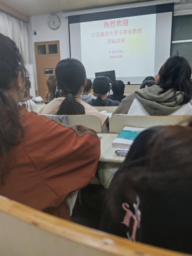 通过一遍遍反复的比较与练习,王聿良教授最后以一段英文自述来检验同学们的学习成果。成果显然,同学们从原来的大惑不解,到最后的恍然大悟,不假思索。结束时全场掌声雷动,通过此次讲座让同学们理解英语读法的差别,更有针对性的为同学们投入到英语学习中,提升英语技能提供一剂良药,更大大增强大家学习英语的激情,为之后的学习增加了信心。(撰稿人:2023级英语2班边雨洁;审核:王纯磊)