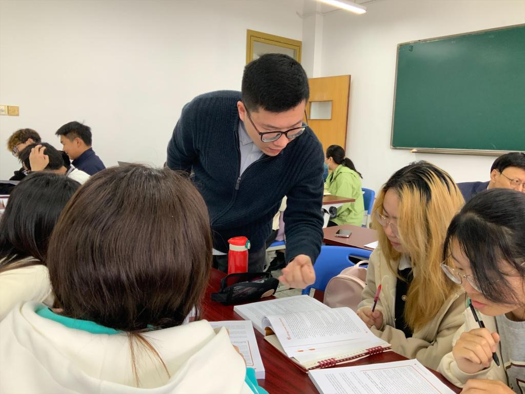 本次公开课教授内容“Unit 5: Writing and Rewriting the Essay”,选自《新时代英语核心教程写作2》,主要内容关于初稿写作和作文改写。刘文斌老师基于任务教学法,通过小组讨论、语篇阅读和师生对话等教学活动,讲授了初稿写作的要点和原则,以及作文改写的技巧。在讲解时做到深入浅出,培养学生的逻辑思维和乐于用英语表达的能力,同时紧密结合当前社会的发展和热点,将语言知识和思政元素有机融合,坚持立德树人,使学生在学习知识和培养能力的过程中实现价值塑造,有效突出课堂的实效性和高阶性。