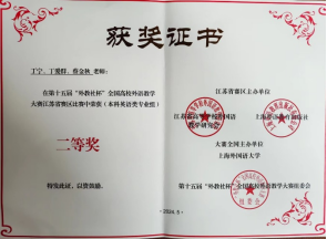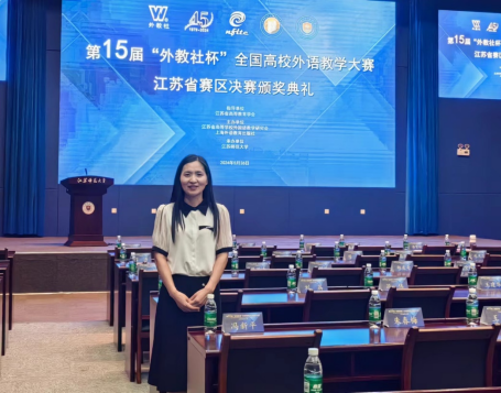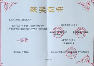 5月24日-26日,第十五届“外教社杯”全国高校外语教学大赛江苏省决赛在江苏师范大学举行。本届外语教学大赛分为大学英语综合组、大学英语(视)听说组、本科英语类专业组、职业院校组、研究生英语组5个组别。由外国语学院教师丁宁、丁爱群、蔡金秋组成的团队荣获本科英语类专业组二等奖、由范开芳、佘阿莉、杨凤丽组成的团队荣获大学英语(视)听说组三等奖。