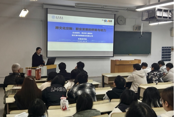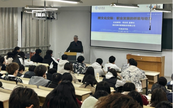 11月21日,外国语学院邀请江苏省产业教授、宿迁学院企业硕导——宿迁澳中玻璃股份有限公司董事长何志权,为英语专业同学开展了一场题为“跨文化交际:职业发展的桥梁与动力”的专题讲座。此次讲座由质评处处长、《跨文化交际》课程负责人曹盈教授主持,外国语学院副院长王善江及教师代表参加了讲座。