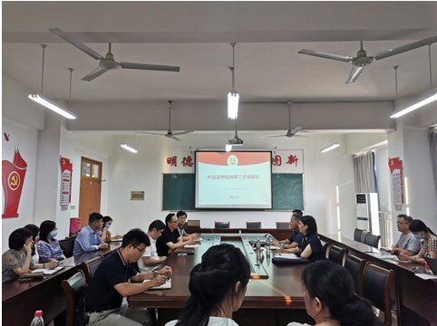 10月4日下午,校科技处副处长、社科处副处长吉益民来外国语学院调研指导。外国语学院副院长王纯磊主持座谈会,外国语学院副院长沈刚及科研团队骨干教师参与座谈。