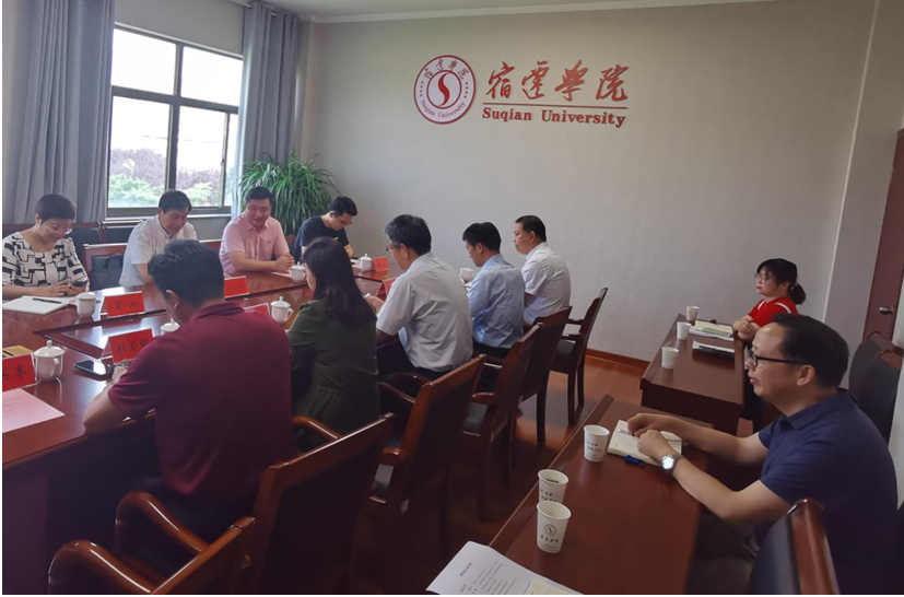6月23日上午宿迁市人社局二级巡视员孙登怀、广东省跨境电商协会常务会长孙镭、宿迁市商务局萧湘处长等领导来校对“跨境电商人才孵化中心”规划及未来建设进行座谈。校长刘志远、副校长丁红艳、教务处处长吴绍兵、继续教育学院院长杜圣明、商学院院长印文郁、外国语学院院长于兴亭等参加了座谈会。会议由刘志远校长主持。