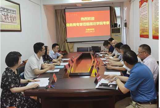 6月17日下午,宿迁市贸促会副秘书长王春业、宿迁电子商务产业园经发局局长张大勇与宿迁市商务局外贸处施康来校对我院的申请进行认定并实地考察。教务处处长吴邵兵、校评估质量办公室主任张进、我院党政领导与英语系负责人参加了认定考察会。会议由于兴亭院长主持。