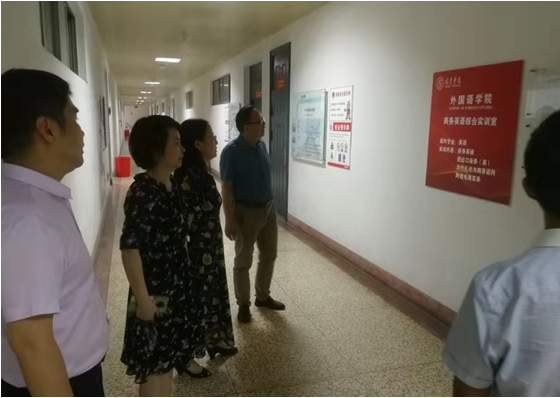 之后,认定考察专家组在王纯磊副院长与英语系负责人的陪同下,参观考察了我院的资料室、办公室与跨境电商人才孵化中心(商务英语综合实验室)等场地、设备等,并予以核实,结果满意。