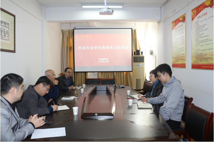 在我院英语专业顺利入选省一流专业之际,为切实提高一流专业的建设质量和人才培养质量、多方拓展我院外语专业学生实习、见习、研习的社会企业资源,我们邀请到牵头负责“中国宿迁跨境电商实验区”的市商业局外贸处长萧湘一行深入校园面对面洽谈教科研合作。于兴亭院长首先就我们专业发展历程、专业设置、师资人才及教师教科研团队研究方向进行了概要的介绍。萧湘处长一行首先就我们外语专业人才培养方案的具体经贸类涉外课程设置进行了调研,然后双方就人才培养、科教融合、协同创新等议题深入讨论,初步就电商外贸人才培养、教科研协同创新达成了战略性框架合作协议。