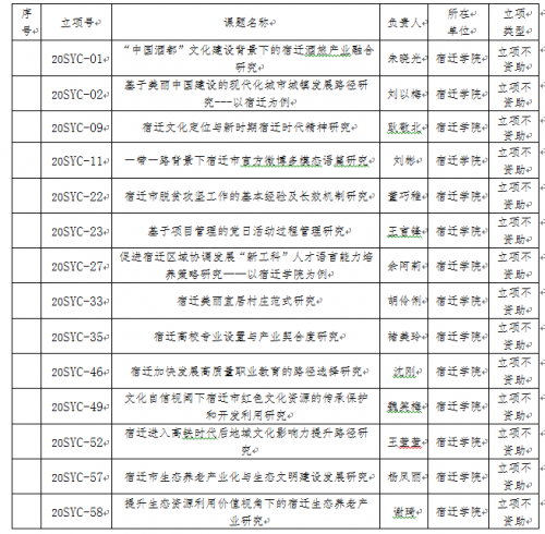 近日,宿迁市哲学社会科学联合会公布了2020年度宿迁市社科研究课题立项结果,我院获批14项(详见附件)。