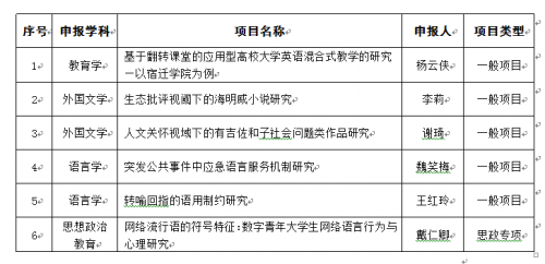 2020年度江苏高校哲学社会科学研究一般及思想政治专题项目申报工作已经结束。经评审委员会专家评审,我院《基于翻转课堂的应用型高校大学英语混合式教学的研究—以宿迁学院为例》等6个研究项目,报送教育厅立项备案,现予以公示(见附件)。