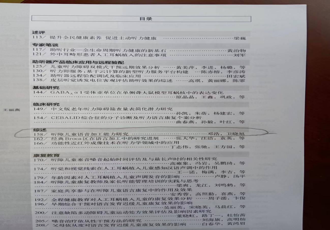 近日,我院19英师3班邓浩同学以第一作者在《中国听力语言康复科学杂志》(双月刊)发表学术论文《听障儿童语音加工能力研究》,指导老师为卫晓旭博士。该论文从语音意识、语音编码和言语工作记忆三个方面入手,梳理近20年听障儿童语音加工能力的研究,总结当前已取得的成果和不足并进行展望,为探索听障儿童语音加工机制提供了参考。