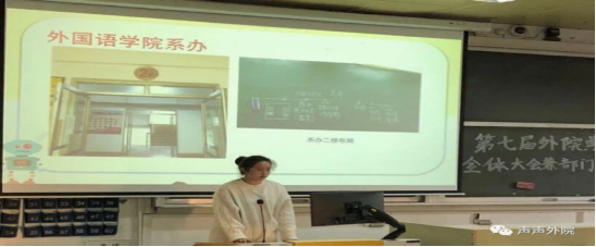 2021年11月10日16:30,外国语学院学生会在一号楼六阶召开了宿迁学院第七届外国语学院学生会全体大会兼部门培训。召开本次会议的目的是为了能够让各位志愿者们了解学生会的相关信息,了解学生会的组成,并且使志愿者们更加明确自己的工作职责,为以后更好地进行学生会工作做准备。出席本次会议的有主席团成员李安宁同学、马博文同学和施祺同学,学生会五大部门的部长及副部长和21级新生志愿者。