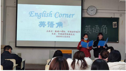 2020年12月20日,外国语学院举行了第二次英语角活动,是一次由外国语学院学生会学习部、文礼部,银通口译社共同组织,面向宿迁学院全体学生的活动,他们有自己响亮的口号:Don't be shy!Just try!