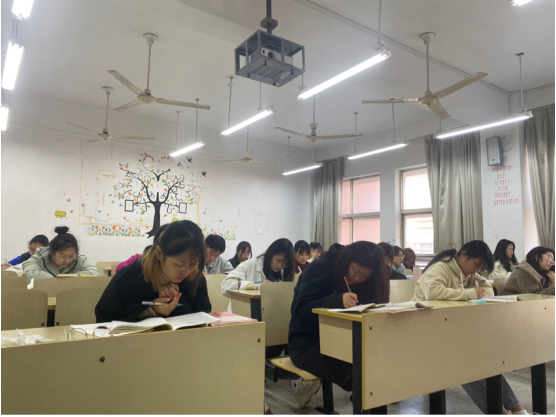 晚自习,同学们继续与四级做着不懈斗争,学委们组织全班一起听听力、默单词、练阅读。不仅如此,各班班助定期检查范文的背诵情况,学院组织四级模拟考试。虽然少了高中时老师的监督和父母的唠叨,但大家丝毫没有松懈,仍孜孜不倦地学习。