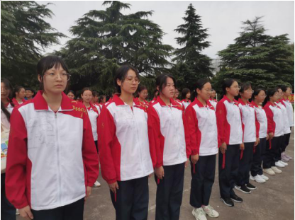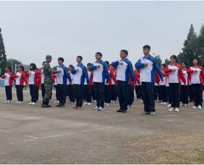 “向前看!”一声令下,神采奕奕的抬头,意气风发的挥臂,气宇轩昂的踏步,一气呵成,英姿焕发。同学们的眼神坚毅勇敢,动作铿锵有力,烈日的曝晒击垮不了同学们的意志,汗水的挥洒磨灭不了同学们的信念。口号声声,军歌嘹亮,熊熊的烈焰与不败的斗志在同学们的心中冉冉升起,呐喊与热血浇灌出了酣畅淋漓的青春。
