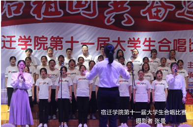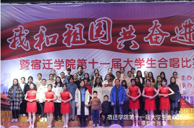 比赛前,各个班级在主持人的带领下,熟悉了上场顺序及流程。有些班级抓住仅有时间进行上场前的最后排练。比赛开始后,灯光亮起,音乐响起,在台上的每位同学都面带笑容,唱出激情,唱出自信,歌颂美丽的祖国。随着比赛的进行,评委的打分也逐渐出来了,观众台下总能听到喜悦的笑声。在比赛间隙,宿迁学院流唱团和街舞团分别上场,活跃气氛,给比赛增添了不少趣味。时间飞逝,很快比赛就接近尾声,各个班级的评分奖项也依次出来。最后,由戴仁卿老师、王姗老师、王言锋老师及李战成老师分别上台为获奖班级进行颁奖。