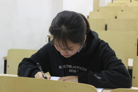 首先,参赛人员陆续进场签到,根据事先安排的座位号入座。然后组织人员分发试卷并开始计时,整场考试时间为40分钟,此次竞赛的题目包括软件操作知识、常识公务礼仪知识,公文写作知识,以笔试的形式考查了学生对所学知识的应用,旨在督促学生提高社会实践能力,为日后就业储存必备知识、打下良好基础。参赛人员时而埋头沉思、时而奋笔疾书,40分钟后,由监考人员收取试卷。