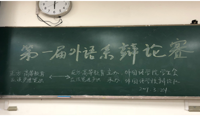 2019年3月24日晚,第一届外语系辩论赛在4106教室正式展开了。本次辩论赛活动由外国语学院学生会主办,外国语学院辩论队承办。双方辩手就高等教育应该宽进严出还是严进宽出展开辩论。