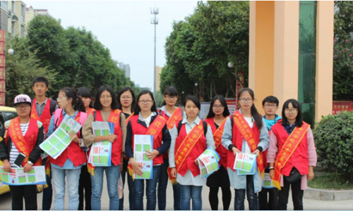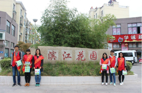 2016年9月29日中午一点宿迁学院外国语学院团总支的十几名志愿者在学姐的带领下来到滨江花园小区,为小区居民宣传普及建设文明城市知识!