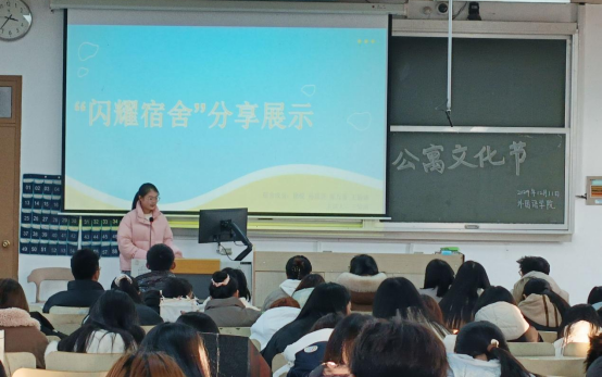本次公寓文化节学生们以宿舍为单位踊跃参加了防诈骗海报制作、变废为宝、宿舍成长日志、闪耀宿舍评选等丰富多彩的活动。变废为宝展示环节,参赛宿舍成员充分发挥奇思妙想,将平日里废弃的物品巧妙地转化为宿舍里的实用物件。学院非毕业班的每间宿舍都精心制作了“宿舍成长日志”,日志涵盖花名册、宿舍门牌设计、宿舍公约、宿舍文化、宿舍趣事、宿舍荣誉、共处感悟等8个模块。按年级推选出来优秀日志的宿舍舍长在活动中进行分享展示。“闪耀宿舍”评选环节则聚焦于宿舍的整体风貌与特色文化展示。学生们在这样的集体活动中,感受友爱的温度和家的温暖。