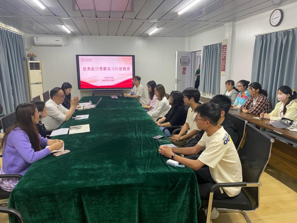 为进一步规范学院出国(境)学生管理,我院于5月28日下午,在8108会议室,举办2025年出国(境)学生行前教育会。院长王纯磊、党委副书记王倩、暑假期间赴美/日带薪实习的13位学生参加。