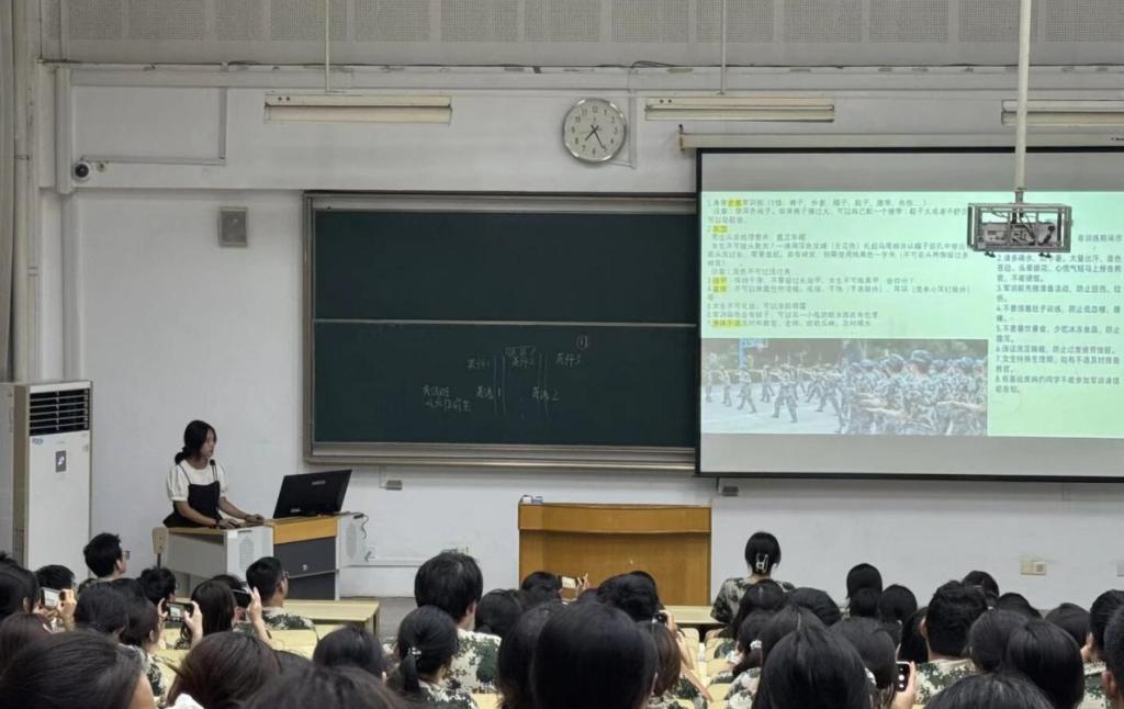 王倩以“答好军训四道题”为主题,引导新生深入领悟军训的真正意义,帮助新生从思想层面做好迎接挑战的准备。24英师2班焦书妍和岳婧怡对宿舍内务卫生和军训场地管理进行讲解。吴耀老师强调了军训目的,介绍了军训时间及场地,并对军训队列会操、内务卫生、日常管理和军体拳方队等内容进行了详细说明,同时对接下来的军训提出相应的要求。