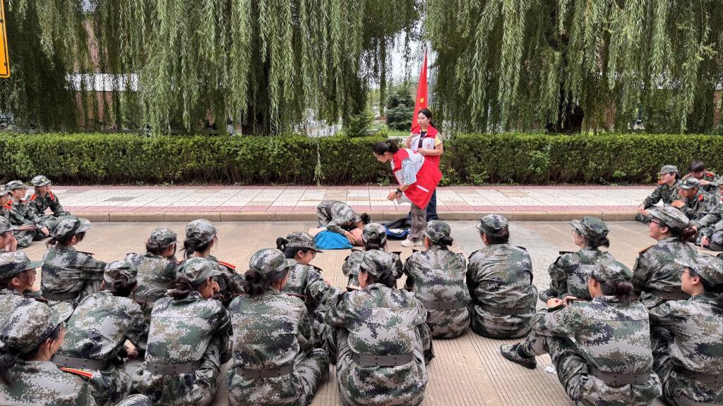 9月7日,2025级新生军训第三天。上午,训练重点是正步。操场上,新生们精神抖擞,全身心投入训练。教官对正步的动作要点进行细致讲解,同学们专注聆听,随后反复练习。他们身姿挺拔,每一次出腿、摆臂都刚劲有力。下午,军训内容为齐步。同学们在教官的指挥下,认真练习齐步的行进与立定。大家力求步幅均匀、节奏一致。16:00到17:00,进行急救知识讲解。院红十字会为新生们详细介绍了心肺复苏、止血包扎等常见急救技能的操作方法与注意事项,并通过现场演示,让同学们更直观地了解急救流程。这一天,正步与齐步的训练增强了新生们的纪律性与团队协作能力,而急救知识的学习则让大家掌握了重要的生存技能,充实且有意义。