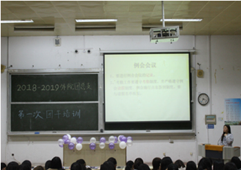10月20日晚上7:00,外国语学院团总支于二阶举行了第一次团干培训,参与本次培训的有团总支副书记、各部门部长、团小组成员及团总支全体成员。