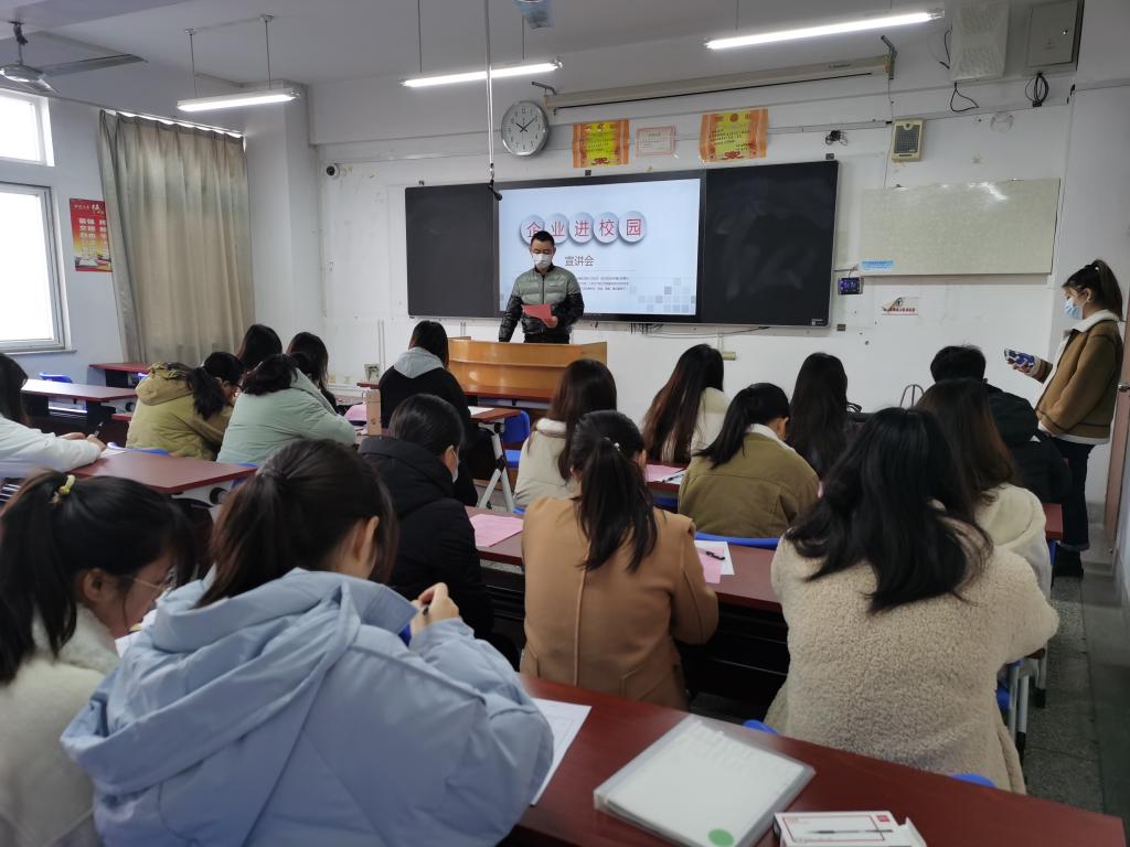 为给同学们提供更多就业机会,扩宽学生行业视野,增进学生对企业的了解,12月10日上午,我院邀请江苏双鹿电器有限公司人事主管刘鸿为2022届毕业生进行宣讲,18级英语专业同学在1209教室参加了宣讲会。