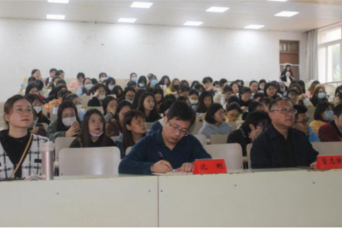 2020年10月14日下午4∶00,外国语学院2017级就业创业指导讲座在1号楼一阶教室准时开始。出席本次推进会的有外国语学院于兴亭院长、管志强书记、沈刚副院长、王纯磊副院长、英语系专业主任李长忠教授、2017级辅导员王姗老师以及全体2017级同学。