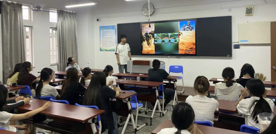 施嘉宇和周宇辰两位退役学生为同学们集中宣讲征兵的意义及相关优惠政策,对征兵入伍条件、部队发展、经济补助、退役优待、就业政策等方面进行了详细的介绍,并结合自身向同学们展示丰富的部队生活和退伍大学生良好精神面貌,激励大学生们积极参军入伍,为强军兴军事业贡献力量!