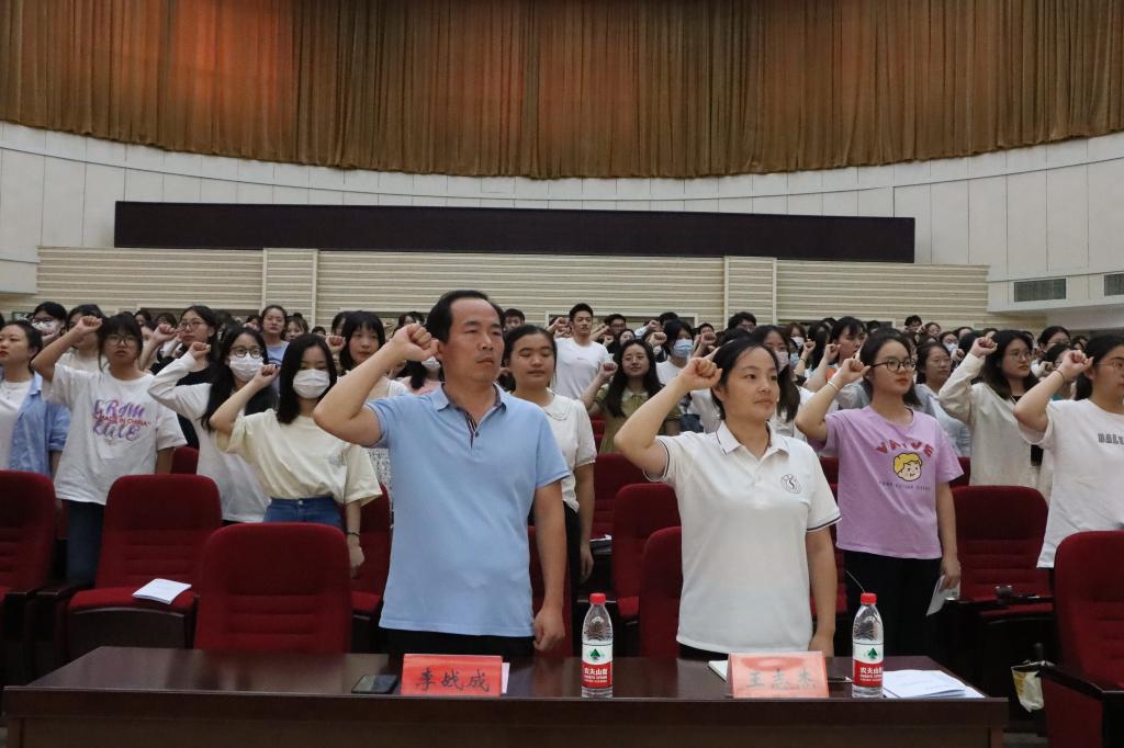 在学生党员代表程榆的领誓下,到会全体同学以积极自信、精神饱满的状态大声宣誓,表达了对学校本科教学工作合格评估的坚定信心和全力支持的坚定态度。