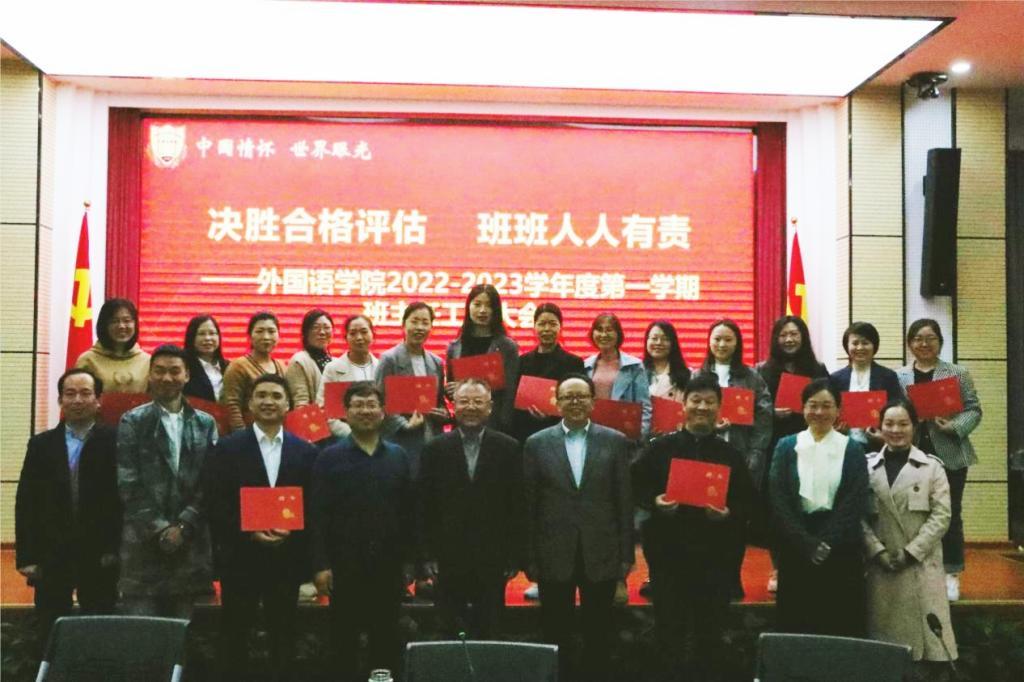 为更好落实立德树人根本任务,顺利迎接本科教学工作合格评估,10月12日,外国语学院在新图报告厅召开本学期第一次班主任工作会议。学院领导、全体班主任和辅导员参加会议。