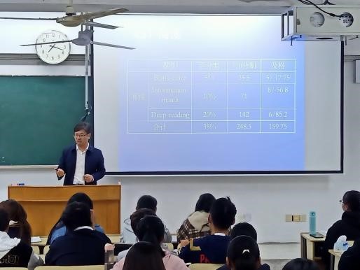 沈刚副院长从“四级考什么”和“四级怎么准备”两个方面,给2022级两个日语班学生进行了深入浅出的讲解,梳理了英语四级考试题型,增强了日语专业学生学习英语及通过四级考试的信心。新生班主任也在各自班级与学生们分享了英语专业学生如何备考大学英语四级的经验,并提出了高分全部通过大学英语四级的目标要求。