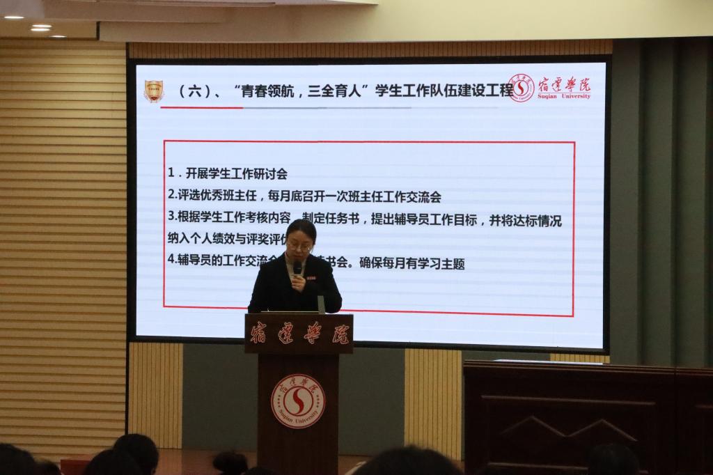 王倩副书记围绕“立德树人”根本任务汇报了外国语学院“1+1+3+6+N”(一个中心,一个关键,三大载体和六大工程)学生工作体系,对学院的学生工作进行了整体设计和系统规划。