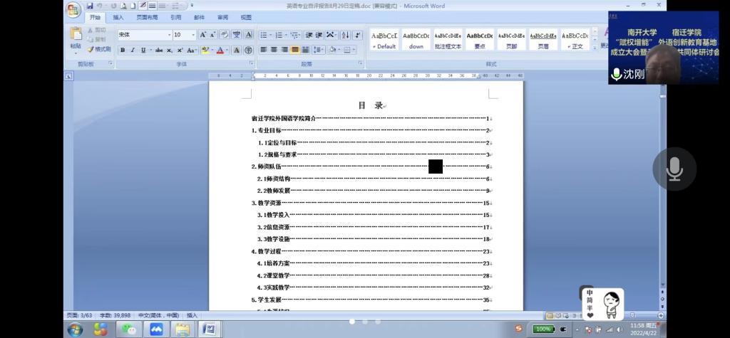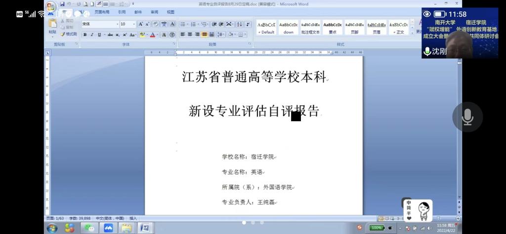 4月22日上午,外国语学院在腾讯会议开展了新专业评估推进会,副院长王纯磊、沈刚以及全体日语系教师参加会议。